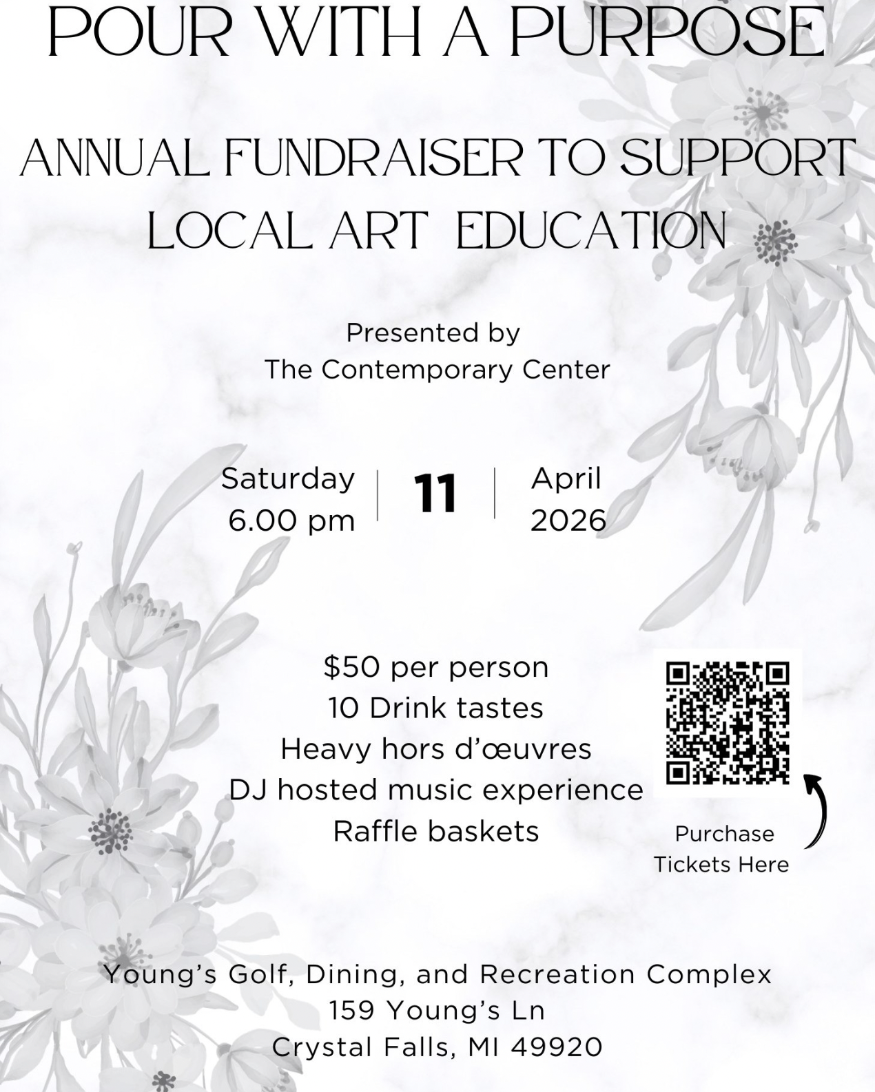Date Apr 11 2026 Time 6:00 pm - 9:00 pm Pour with a Purpose Share this event + Add to Google Calendar + iCal / Outlook export 00 days 00 hours 00 minutes 00 seconds