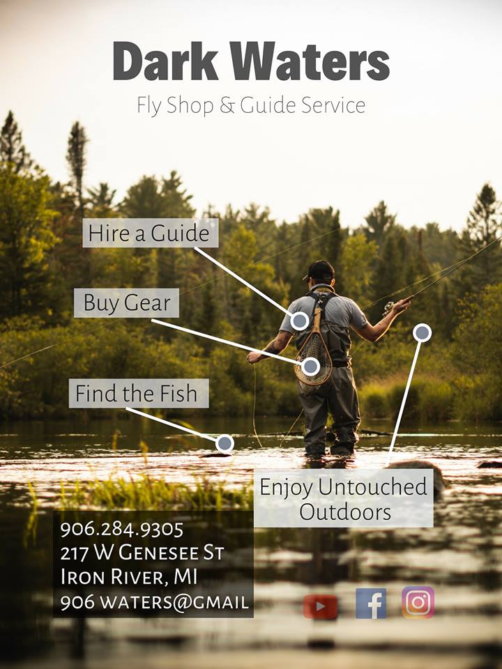 Dark Waters Fly Shop & Guide Service InfoLocationWebsiteEmailPhotos 217 E Genesee StIron River, Michigan, 49935 (906) 284-9305 Loading... No Records Found Sorry, no records were found. Please adjust your search criteria and try again. Maps failed to load Sorry, unable to load the Maps API. Website906waters@gmail.com DW-Logo DW-2 DW-3